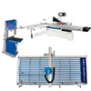 SCM  Formatkreissäge, Typ Si 5 Linvincibile, Neumaschine, CE Zeichen, Besäumlänge 3.200 mm, Schnittbreite (rechts) 1.500 mm, Schnitthöhe 200 mm, komplett mit 5 Achsen Digitalsteuerung und LCD Bildschirm im Steuerpult über dem Tisch, LED-Anzeigen, Vorritzaggregat in 2 Achsen elektrisch digital verstellbar, elektrisch-digitale Höhen- und Schrägerstellung des Sägeblattes, Hauptmotor 9 kW, Quick-Lock Anschlag, optionaler Index-Gehrungsanschlag, optionaler digitaler Parallelanschlag (links vom Sägeblatt), elektrisch digitale Verstellung des Parallelanschlages (rechts v. Sägeblatt) über Kugelrollspindel mit THK - Linearführung, inkl. Sägeblattpaket